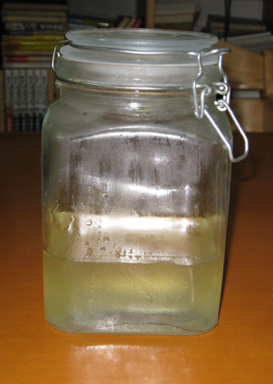 グレープシードオイル 460g、精製水 161g、アルカリ55g